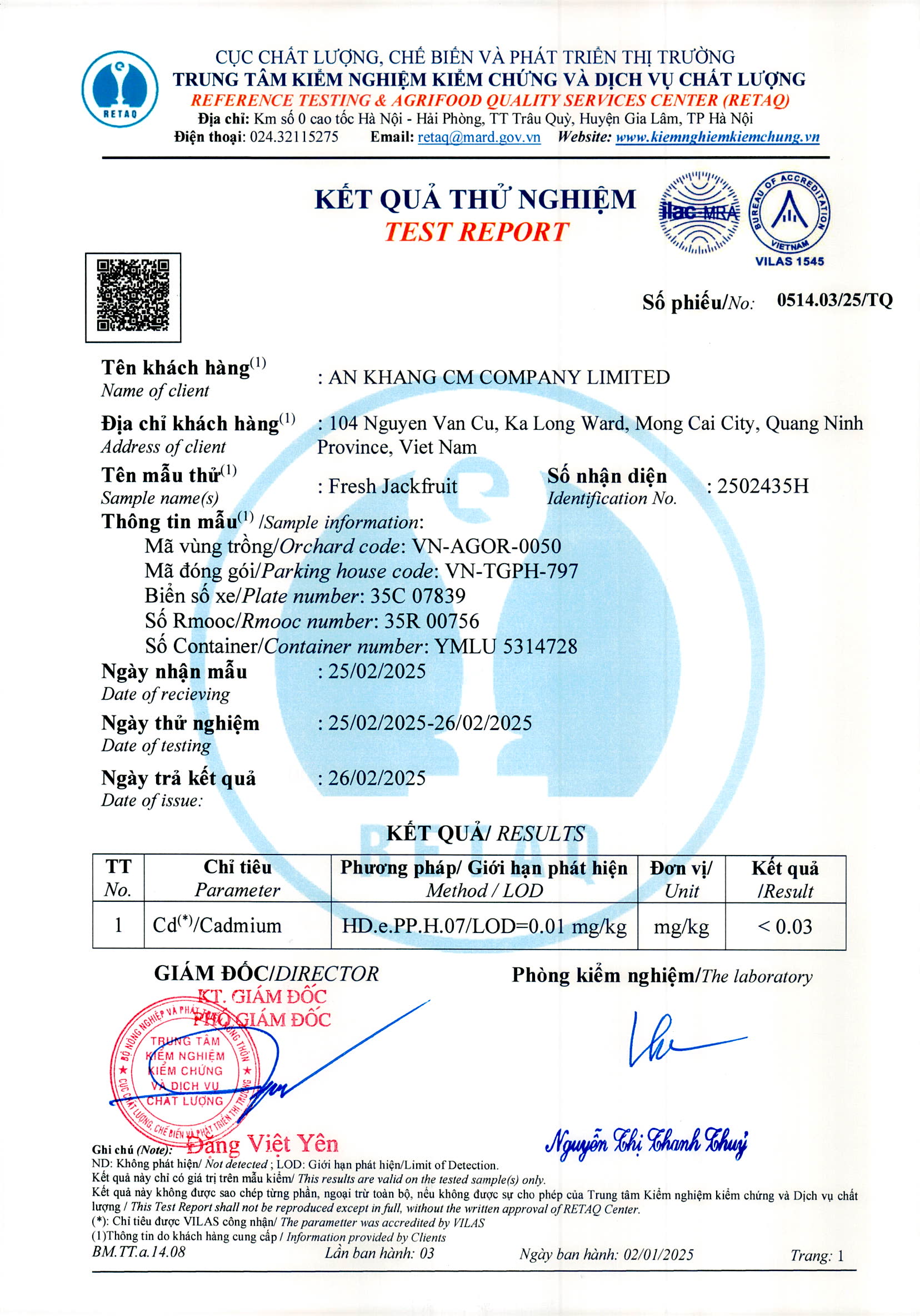 Phiếu trả kết quả số 0514.03/25/TQ Phiếu trả kết quả số 0514.03/25/TQ Phiếu trả kết quả số 0514.02/25/TQ Phiếu trả kết quả số 0515.01/25/TQ