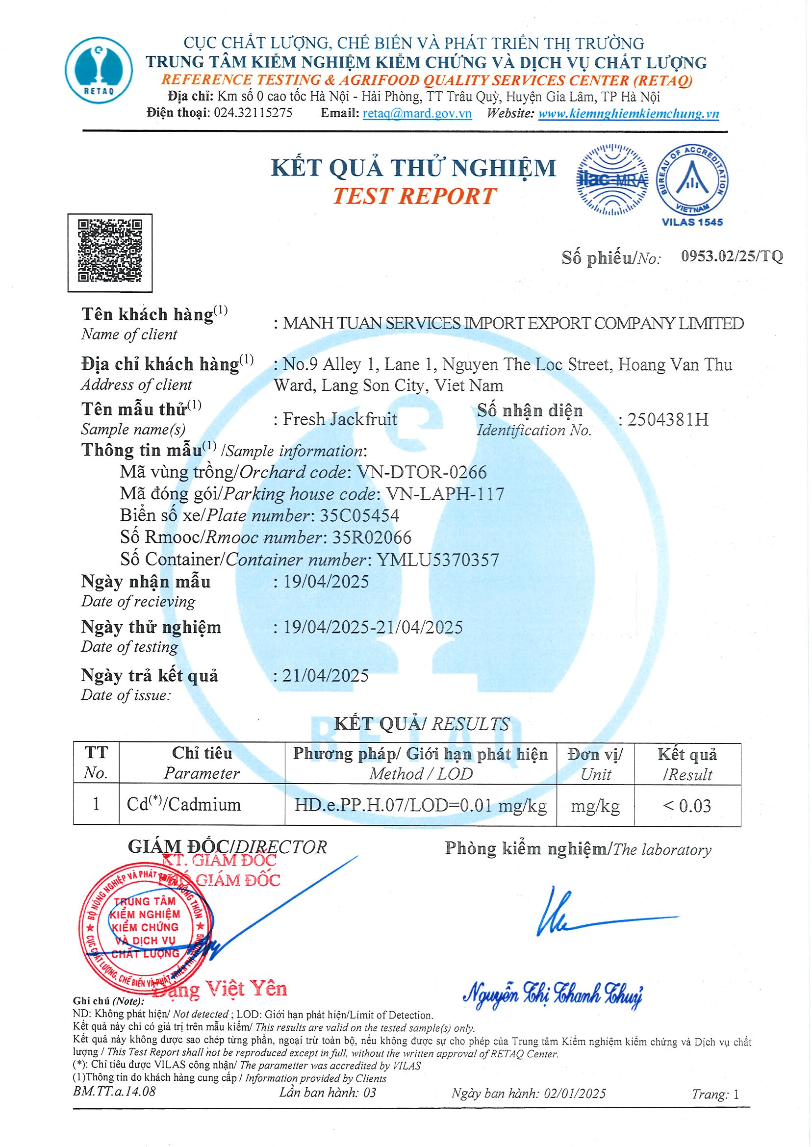 Phiếu trả kết quả số 0953.02/25/TQ Phiếu trả kết quả số 0953.02/25/TQ Phiếu trả kết quả số 0953.01/25/TQ Phiếu trả kết quả số 0929.03/25/TQ
