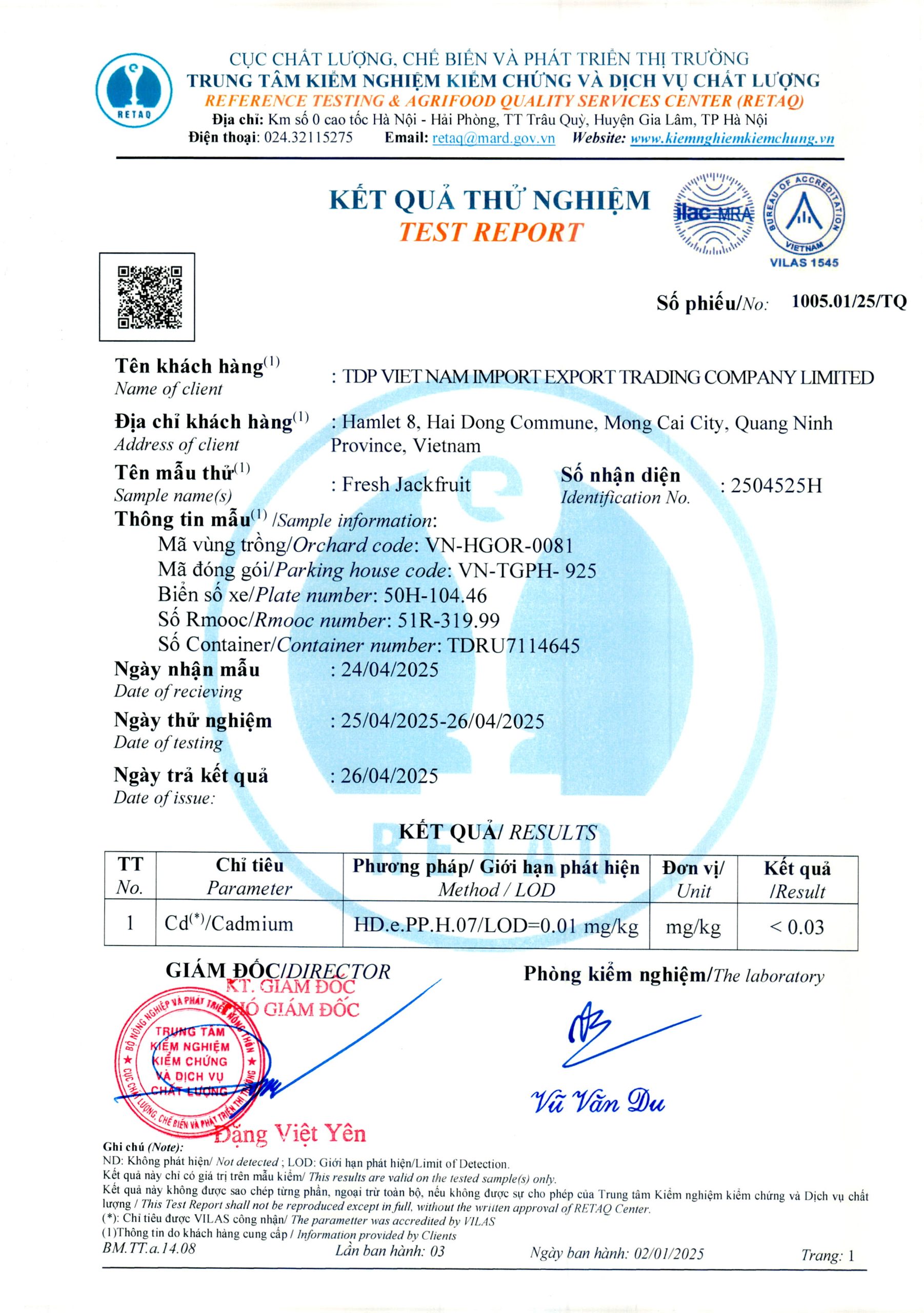 Phiếu trả kết quả số 1005.01/25/TQ Phiếu trả kết quả số 1005.01/25/TQ Phiếu trả kết quả số 1008.01/25/TQ Phiếu trả kết quả số 1020.03/25/TQ