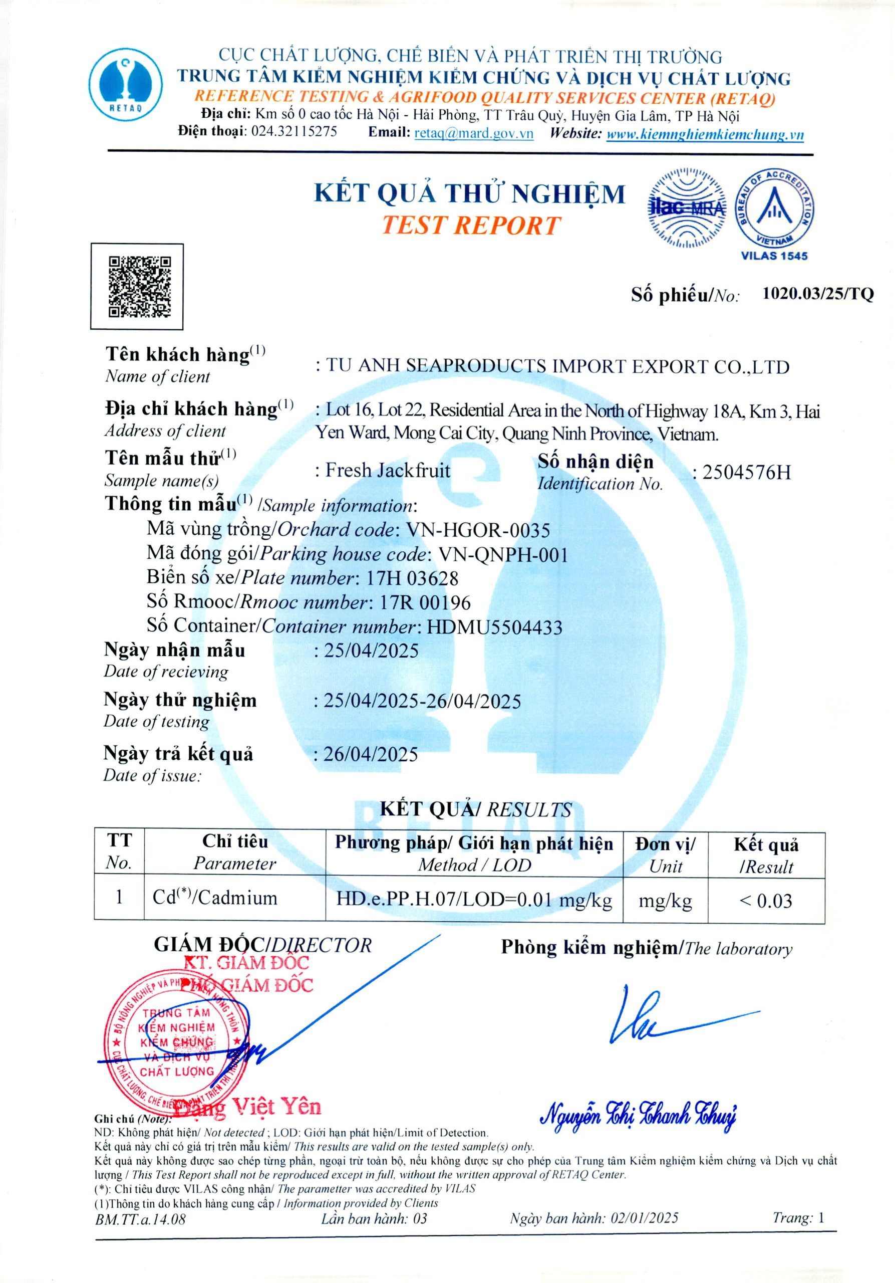 Phiếu trả kết quả số 1020.03/25/TQ Phiếu trả kết quả số 1020.03/25/TQ Phiếu trả kết quả số 1005.01/25/TQ Phiếu trả kết quả số 1022.02/25/TQ
