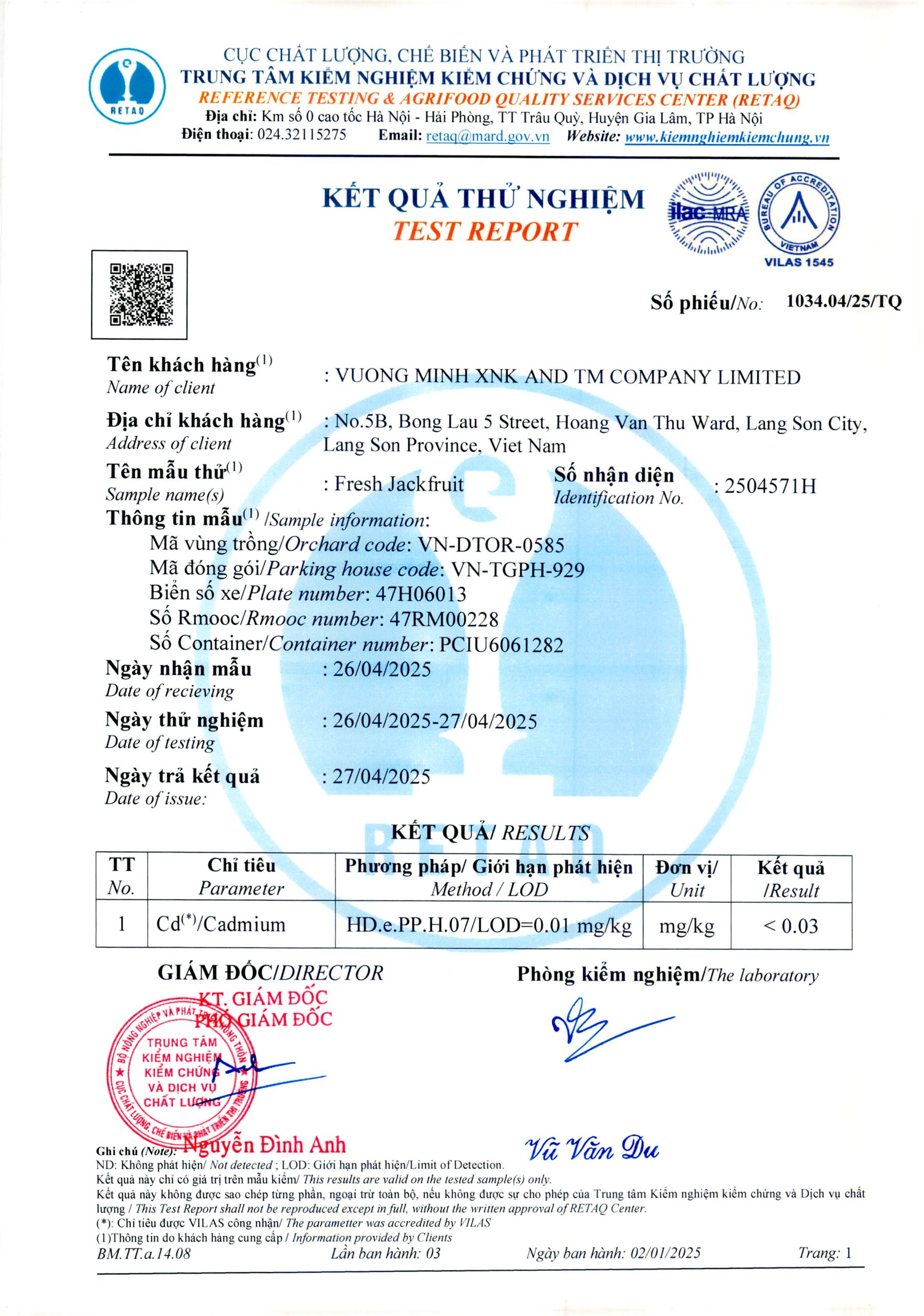 Phiếu trả kết quả số 1034.04/25/TQ Phiếu trả kết quả số 1034.04/25/TQ Phiếu trả kết quả số 1034.03/25/TQ Phiếu trả kết quả số 1034.05/25/TQ