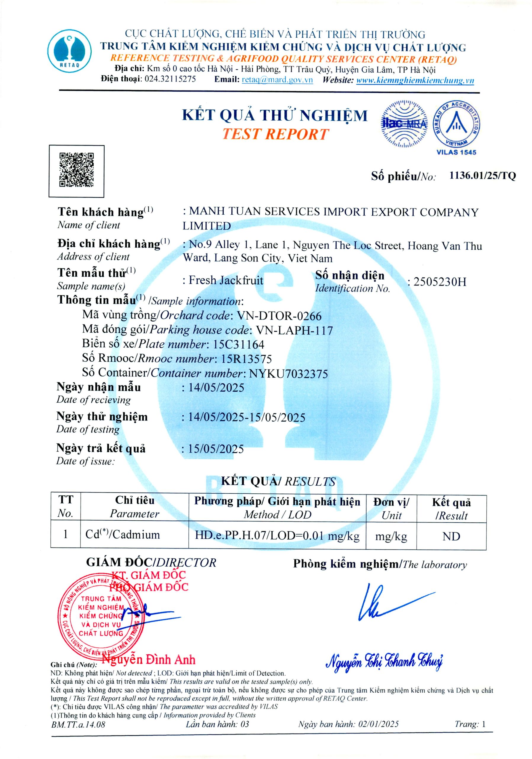 Phiếu trả kết quả số 1136.01/25/TQ Phiếu trả kết quả số 1136.01/25/TQ Phiếu trả kết quả số 1135.01/25/TQ Phiếu trả kết quả số 1136.02/25/TQ