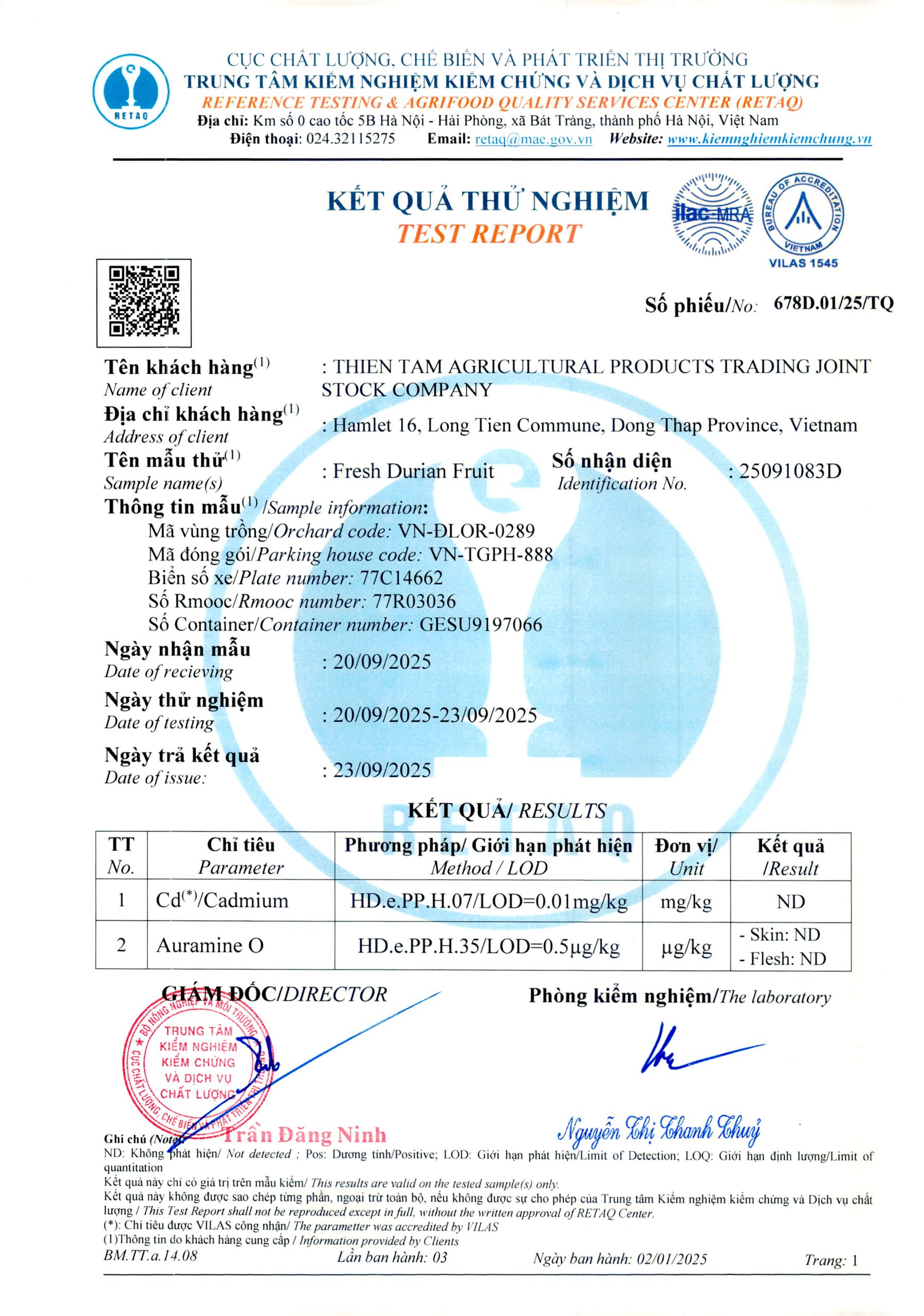 Phiếu trả kết quả số 678D.01/25/TQ Phiếu trả kết quả số 684D.04/25/TQ Phiếu trả kết quả số 678D.02/25/TQ