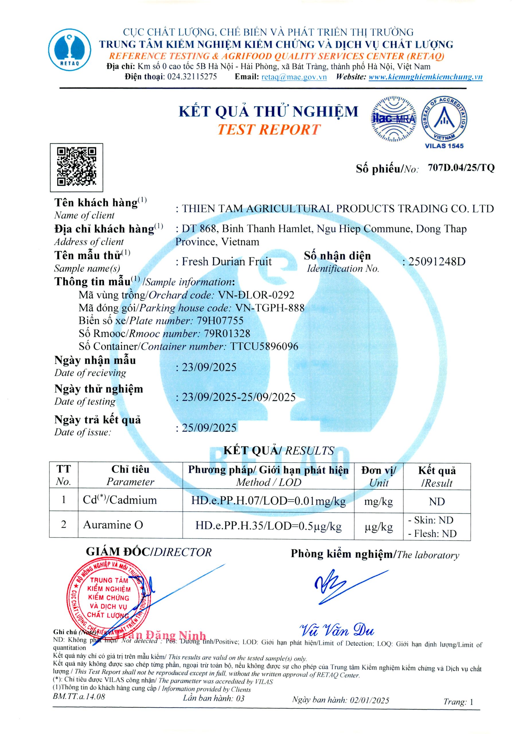 Phiếu trả kết quả số 707D.04/25/TQ Phiếu trả kết quả số 707D.03/25/TQ Phiếu trả kết quả số 707D.05/25/TQ