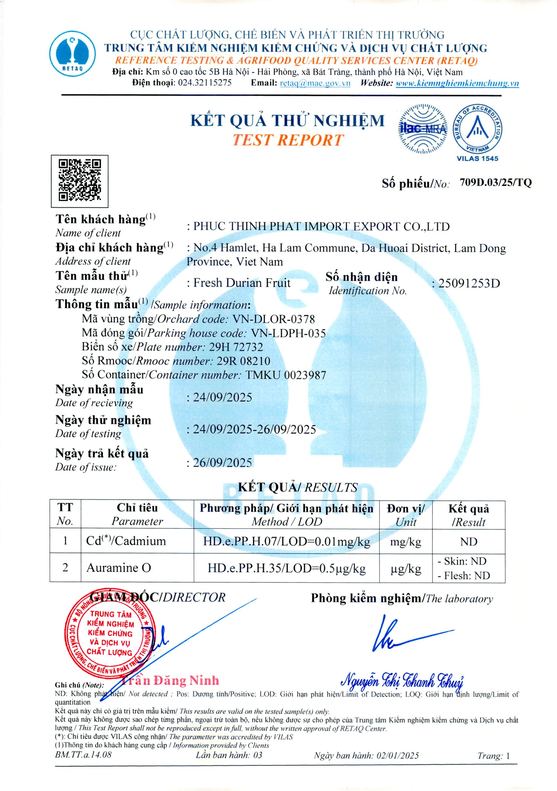Phiếu trả kết quả số 709D.03/25/TQ Phiếu trả kết quả số 709D.02/25/TQ Phiếu trả kết quả số 709D.04/25/TQ