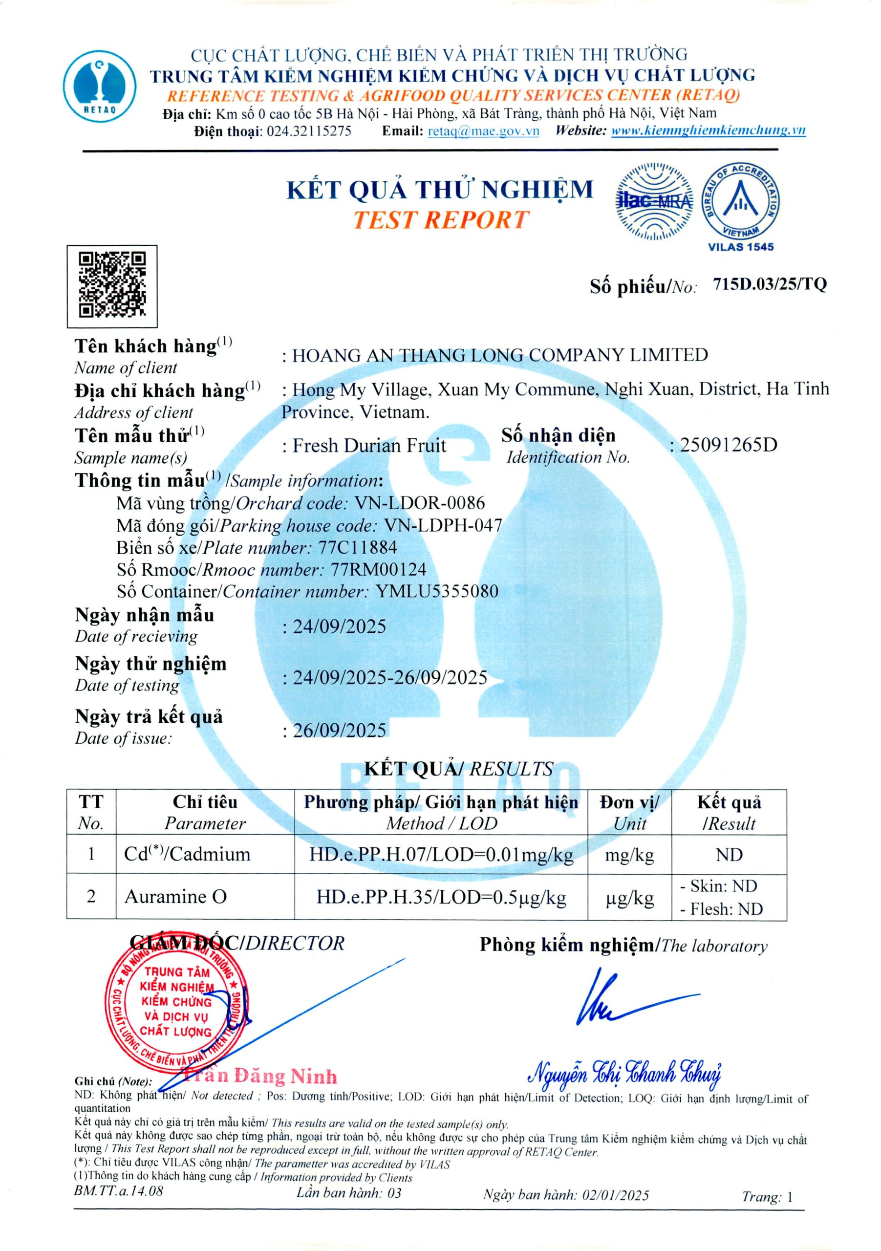 Phiếu trả kết quả số 715D.03/25/TQ Phiếu trả kết quả số 715D.02/25/TQ Phiếu trả kết quả số 715D.04/25/TQ