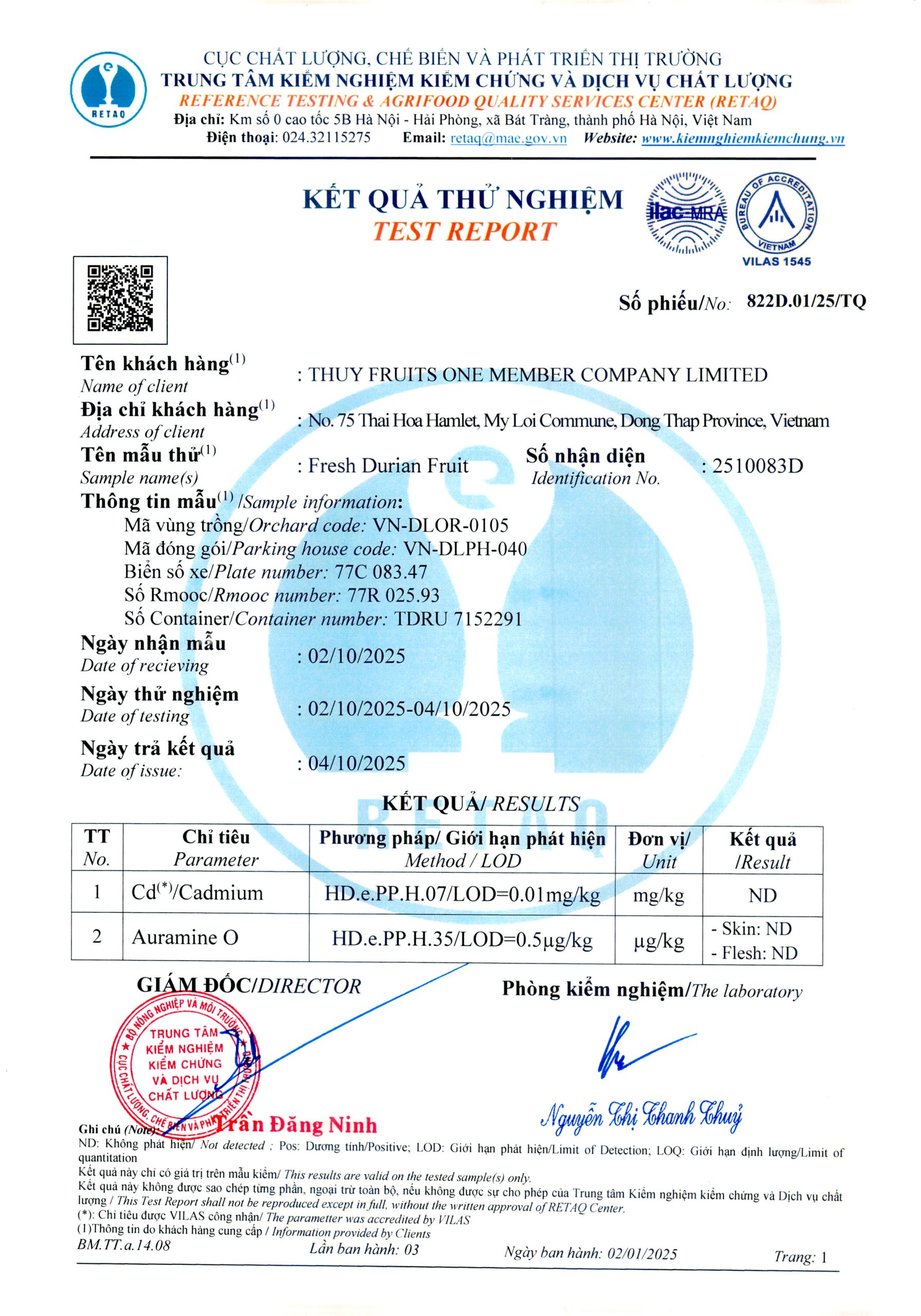 Phiếu trả kết quả số 822D.01/25/TQ Phiếu trả kết quả số 851D.06/25/TQ Phiếu trả kết quả số 822D.02/25/TQ