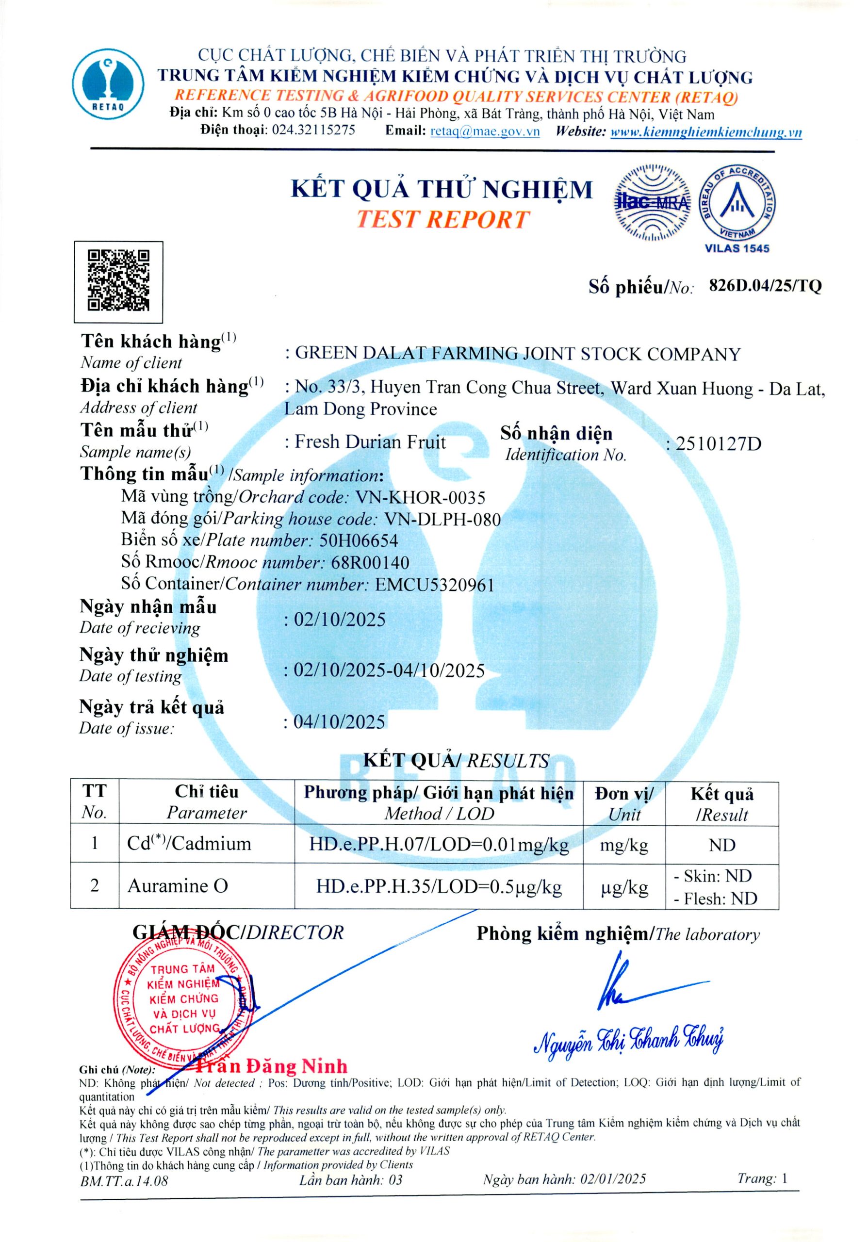 Phiếu trả kết quả số 826D.04/25/TQ Phiếu trả kết quả số 826D.03/25/TQ Phiếu trả kết quả số 854D.01/25/TQ